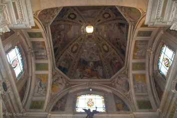 Als wir endlich reinkönnen und uns erwartungsfroh auch noch zwei Audioguides besorgt haben, macht sich etwas Ernüchterung breit. Der eher unspektakuläre Innenraum hält nicht wirklich, was die tolle Fassade verspricht — zumindest nicht der Bereich, der heute für uns zugänglich ist, und das ist für eine Stunde Anstehen nicht sehr viel.