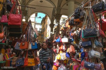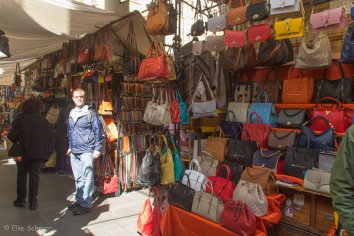 Ansonsten ist der Markt recht bunt und wird — wie auch sonst sämtliche Geschäfte in der Stadt — von Handtaschen dominiert. Ein paar vereinzelte Stände mit Souvenirs und bunten Tüchern gibt es dazwischen auch — aber hauptsächlich sieht man Handtaschen über Handtaschen…