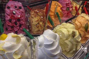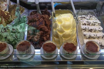 Der zweite wunderbar florierende Ladentyp in Florenz sind die Eisgeschäfte. An jeder Ecke findet man eines und an den schmackhaften Auslagen kann man kaum vorbeigehen ohne zuzugreifen. Wir haben uns sagen lassen, dass ein waschechter Florentiner mindestens zweimal pro Tag Eis ist.