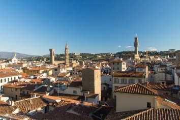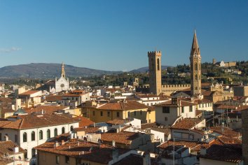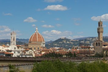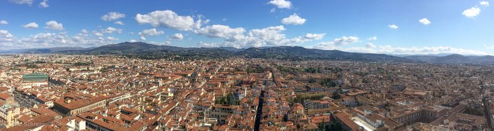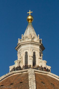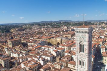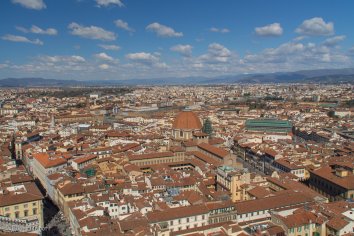 Die Aussicht vom Dach der Kuppel entschädigt dann natürlich für alle Strapazen. Man hat einen phänomenalen Rundumblick — auf die Stadt und das Umland, auf das Dom-Dach und den Campanile, über die Dächer hinweg und in die Hinterhöfe — einfach großartig.