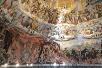 Einige Details, die man aus dieser Nähe wahrnimmt, sind dabei schon etwas verstörend, denn als Thema der Fresken haben Vasari und Zuccari das jüngste Gericht gewählt. Besonders am unteren Rand sind die Qualen der Hölle sehr drastisch dargestellt.