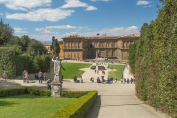 Cosimo I. stellte im 16. Jahrhundert die renommiertesten Gartenarchitekten seiner Zeit ein, um den ausgedehnten Garten auf dem abschüssigen Gelände zu gestalten. Das Ergebnis kann sich wirklich sehen lassen: Man könnte hier wahrscheinlich den ganzen Tag zubringen und würde immer noch nicht alles gesehen haben. Noch dazu hat man von oben einen wirklich schönen Ausblick auf die Stadt: