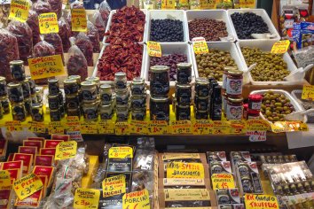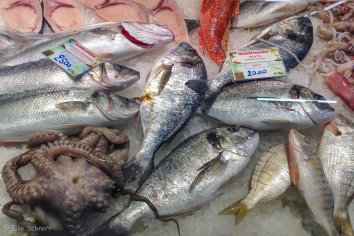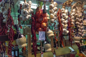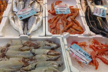 Wie meistens gehen uns auch diesmal Augen und Nase über bei all den leckeren Sachen, die hier angeboten werden — hauptsächlich lokale Spezialitäten, Fisch, Gemüse und toskanische Snacks. Wir schlendern und probieren uns einmal quer hindurch und finden dabei auch noch das ein oder andere Mitbringsel.