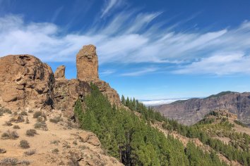 Recht bald haben wir den 1803 Meter hohen Felsfinger im Visier, der sich gleich einer gigantischen Skulptur erhebt und majestätisch über der Caldera de Tejeda thront. Er ist das Relikt eines ehemaligen Vulkanschlots, der durch Erosion abgetragen wurde, und ein in vielen Liedern besungener altkanarischer Kultplatz.