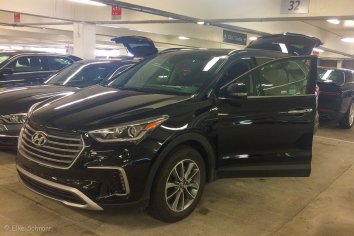 Einen schwarzen Hyundai Santa Fe haben wir bekommen, noch fast neu mit 6000 km auf dem Tacho und mega viel Platz im Kofferraum. Aber wie ich uns kenne, schaffen wir es auch den im Laufe der nächsten vier Wochen vollzustopfen