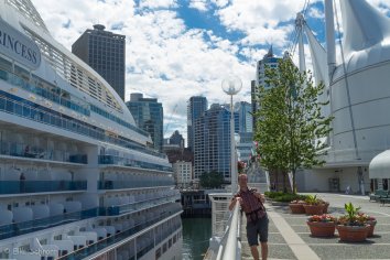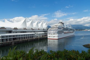 Auch liegen hier gerade zwei große Kreuzfahrtschiffe an der Anlegestelle, die wir uns natürlich ebenfalls anschauen, denn wir spielen ja auch schon eine Weile mit dem Gedanken, mal eine Kreuzfahrt von Vancouver nach Alaska zu machen…