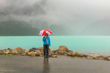 Als wir am Lake Louise ankommen, fängt es wieder leicht an zu tröpfeln.