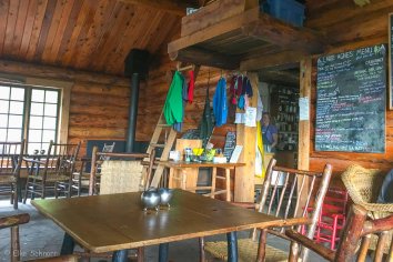 Gegen 13:00 Uhr kommen wir dann am Six Glacier Teahouse an. Hier ist es schon ziemlich voll — das Erlebnis des leeren Teehauses von heute Morgen wird wohl einmalig bleiben…