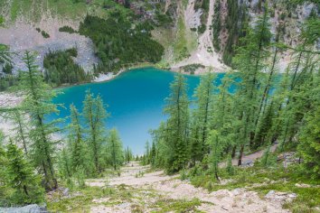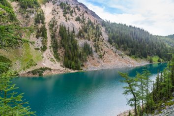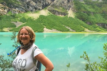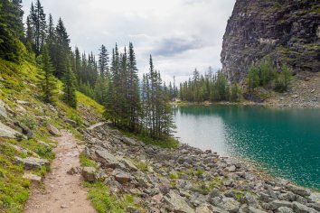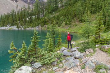 Zunächst wird aber nach einem Blick zurück in’s Tal der Lake Agnes umrundet.