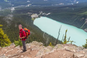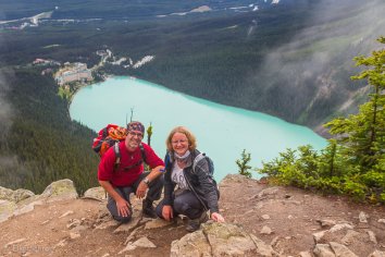 Dann machen wir uns an die Switchbacks, die zum Big Beehive führen. Der Weg ist schon etwas steil, aber die Quälerei lohnt sich definitiv — uns erwartet ein toller Aussichtspunkt mit grandiosem Blick auf den Lake Louise und das Fairmont Hotel.
