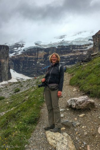 Uns tun nur die vielen Wanderer leid, die jetzt noch oben bei den Six Glaciers sind, und das dürften nicht gerade wenige sein. Vor allem waren da einige dabei, die bekleidungstechnisch eher schlecht ausgerüstet waren…
