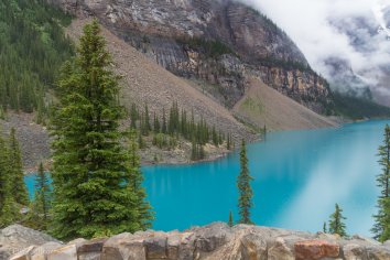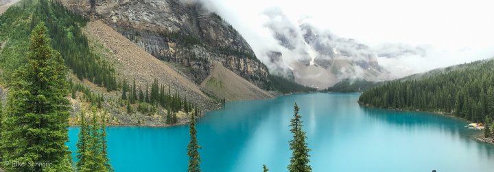 Es schüttet immer noch und ich hatte mich so auf diesen smaragdfarbenen See gefreut, der früher die 20-Dollar-Scheine in Kanada geziert hat.
