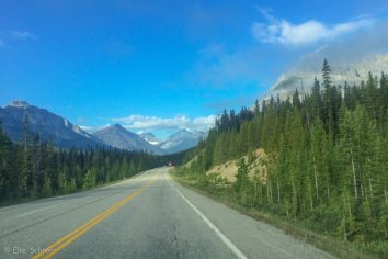Um 8:15 Uhr sitzen wir schließlich im Auto und verlassen Banff bei strahlend blauem Himmel.