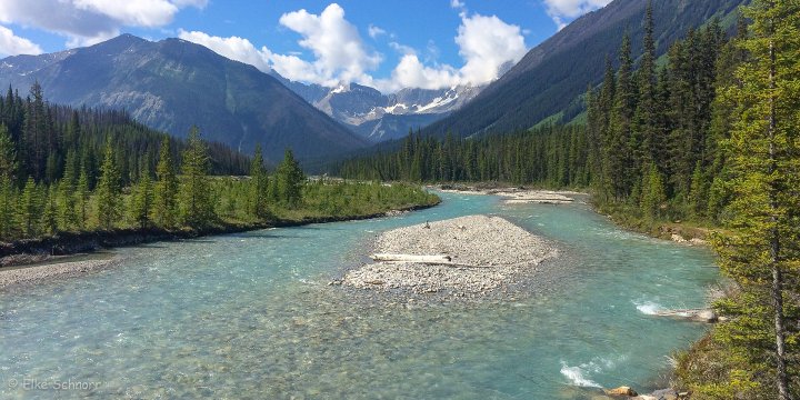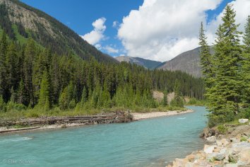 Der Weg zu den Numa Falls, den wir als nächsten Stopp vorgesehen hatten, ist leider gerade wegen Maintenance gesperrt, so halten wir nur noch an einigen der vielen schönen Viewpoints entlang des Kootenay River.