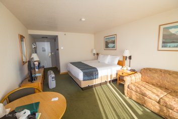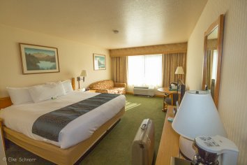 Gegen 19:00 Uhr kommen wir schließlich in Whitefish an und checken in der Pine Lodge ein. Wir bekommen ein schönes großes Zimmer mit großem Kingbett und sind sehr zufrieden.