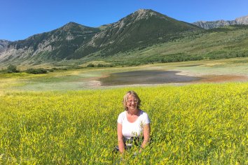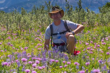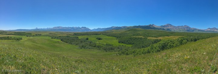 Der Weg führt permanent bergauf durch mannshohes Präriegras und im Blick zurück haben wir eine fantastische Aussicht — dieser Mix aus Prärie und Bergen ist wirklich einzigartig.