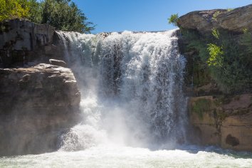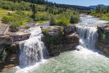 Der nächste Stopp steht dann in Lundbreck an — hier gibt es ein paar hübsche Wasserfälle direkt an der Straße, für die man durchaus anhalten kann, wenn man einmal da vorbei kommt. Eine kleine Badestelle zum Erfrischen ist auch vorhanden und es gibt auch Picknickplätze für eine längere Pause. Wir machen allerdings nur ein paar Fotos und fahren dann weiter in Richtung Coleman.