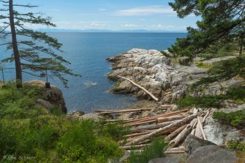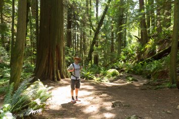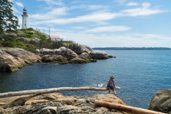 Nach einer halben Stunde Fahrt erreichen wir über den Marine Drive den reizvollen Lighthouse Park in West Vancouver. Hier gibt es ein Netz von Wanderwegen durch den urig belassenen Regenwald und wir laufen über den Valley Trail zum Point Atkinson und dem Lighthouse Viewpoint.