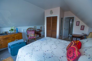 In Nanaimo angekommen, verlassen wir die Fähre und erreichen nach ein paar Minuten unsere vorgebuchte Unterkunft — das Pine & Picket B&B. Unsere Gastgeber Ania und Ingvar begrüßen uns sehr herzlich und wir beziehen unser Zimmer — den Provence Room. Ein kleines aber feines Zimmer, liebevoll eingerichtet mit einem hübschen Balkon und Blick auf die Bucht.