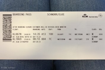 Die Flugzeit ab Calgary ist verhältnismäßig kurz. Nach dem recht guten Essen — mit KLM lässt es sich fliegen