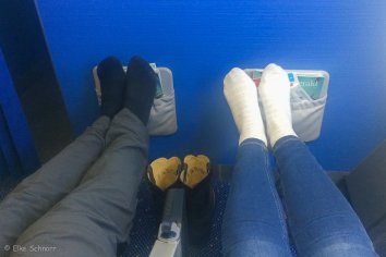 Wir haben soviel Platz für unsere Beine, dass wir selbst im völlig ausgestreckten Zustand noch nicht die Wand vor uns berühren. Einfach Klasse!