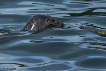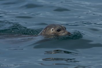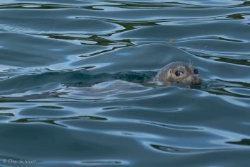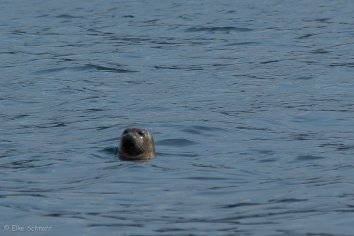Dafür schwimmt ein kleiner Seehund direkt neben unserem Boot vorbei, kuckt uns ganz neugierig an und lässt sich bereitwillig ablichten.