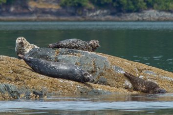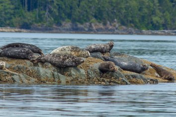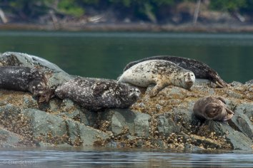 Später entdecken wir auf einem Felsen noch eine Gruppe Seehunde, die sich in der Sonne aalen.