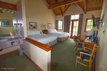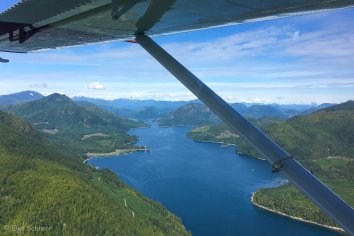 Gegen 15:30 Uhr sind wir wieder in der Lodge zurück. Wir zahlen unsere Rechnung, trinken einen letzten Kaffee auf der Terrasse und warten auf das Flugzeug, was uns wieder nach Vancouver Island bringen wird. Wir sind uns alle einig, dass dies der mit Abstand schönste Wartebereich eines Flughafens ist, in dem wir je waren