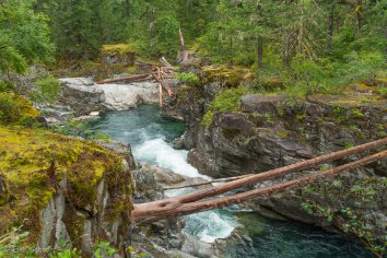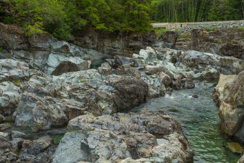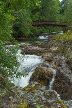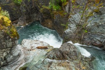 Diesmal nehmen wir im Gegensatz zur Herfahrt die Interstate, da die Aussicht bei dem regnerischen Wetter eh nicht besonders ist. Die Kilometer sind so recht schnell erledigt und eine reichliche Stunde später haben wir schon das erste Zwischenziel für heute erreicht: den Little Qualicum Falls Provincial Park.