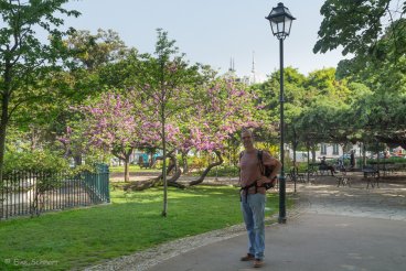 Zuerst kommen wir durch den Jardim do Principe Real — ein hübscher kleiner Park mit alten tropischen Bäumen, der direkt neben unserem B&B liegt und der unter der ausladenden Baumkrone einer uralten mexikanischen Zypresse romantische Schattenplätze bietet.