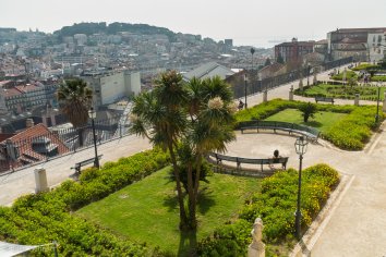Nur ein paar hundert Meter weiter kommen wir zum ersten der sieben Hügel, denen Lissabon seinen Beinamen verdankt: dem Miradouro São Pedro de Alcântara.