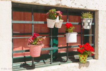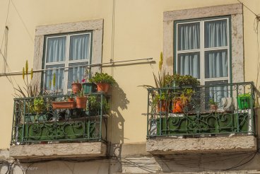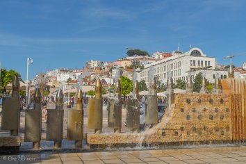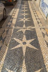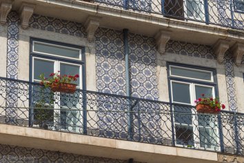 Wir bummeln durch die Gassen von Bairro Alto und Chiado und lassen uns langsam in Richtung Tejo treiben. Beeindruckend die vielen kunstvoll verzierten Fassaden, die bunt gefliesten Häuser und verschnörkelten Balkongeländer, an denen alle möglichen Kabel hinaufkrabbeln und die zweifarbigen Straßenpflaster mit den verschiedensten Mustern.
