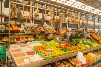 Am Mercado da Riberia drehen wir natürlich eine Runde durch die große Markthalle — wir lieben solche Märkte einfach. Hunger haben wir zwar nicht — aber wir lassen uns immer gerne durch den Anblick und die Gerüche verführen, was natürlich auch diesmal funktioniert: eine Tüte malerische Erdbeeren wechselt den Besitzer