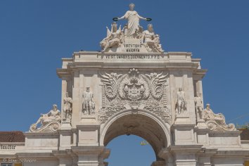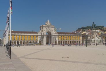Wir schlendern am Ufer weiter, bis wir zum Praça do Comércio mit seinem imposanten Triumphbogen kommen. Umrahmt von Palästen und mit dem Reiterstandbild von König José I in der Mitte ist dieser Platz wirklich toll anzuschauen.