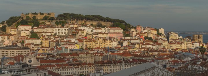 Nach einem kurzen Zwischenstopp, um den kleinen Hunger zu stillen, wollen wir noch zu ein paar schönen Aussichtspunkten auf den anderen Hügeln der Stadt und versuchen, im „Gradientenverfahren“ zum Castelo zu gelangen.