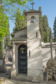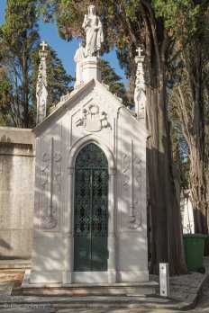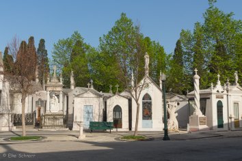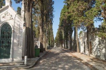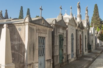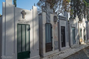 Der riesige Friedhof mit dem ungewöhnlichen Namen (übersetzt bedeutet er Friedhof der Freuden) ist eine kleine Stadt für sich. Auf 13 Hektar stehen hier in 80 Straßen prächtige Mausoleen und bescheidene Grabstellen dicht beieinander. Viele berühmte portugiesische Häupter fanden hier ihre letzte Ruhestätte.