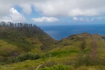 Heute ist es auch deutlich kühler — das Thermometer zeigt nur 15 Grad — aber das macht uns gar nichts, denn gleich zu Beginn der Wanderung geht es mächtig bergauf und wir kommen gut in’s Schwitzen. Als wir die Höhenmeter bewältigt haben, stoßen wir auf die Levada Nova, der wir nun in Fließrichtung folgen.