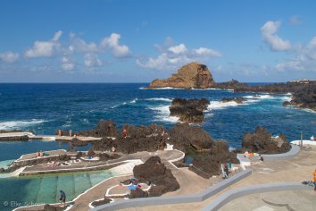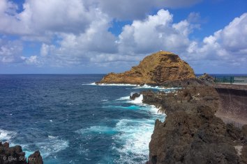 Nach nur kurzer Fahrt kommen wir zum nördlichsten Punkt der Insel: Porto Moniz — ein Ort, der für seine Naturpools berühmt ist, die das Meer hier seit Jahrtausenden in’s Lavagestein der Landzunge nagt.