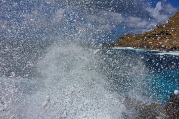Wir parken unser Auto und streben dann in Richtung Meerespromenade. Hier beobachten wir eine ganze Weile die tobende Brandung und die schäumenden Wellen, die im Kontrast zu den schwarzen Lavabecken einen faszinierenden Anblick bliden.