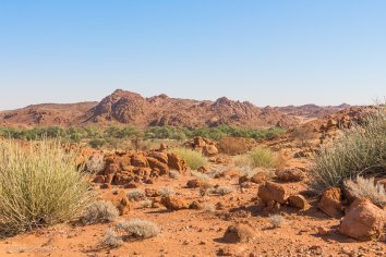 Heute soll uns die Fahrt zum Brandberg führen. Die Landschaft unterwegs gefällt uns ausnehmend gut: