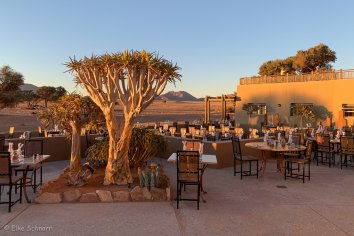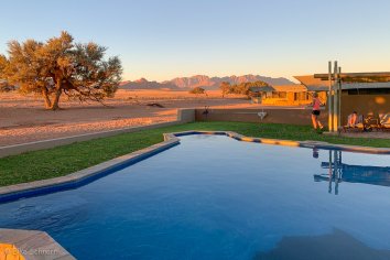 Gegen 15:00 Uhr sind wir schließlich wieder am Gate. Wir überlegen kurz, ob wir noch den Sesriem Canyon anschauen sollen, aber irgendwie ist für heute ein bisschen die Luft raus. Also zahlen wir unsere Eintrittsgebühr für den Park (85 NAD pro Person) und sind im Handumdrehen wieder in der Lodge zurück.