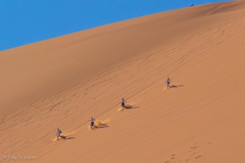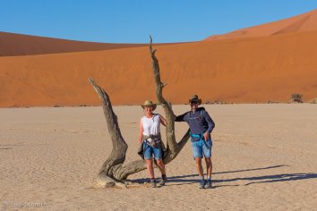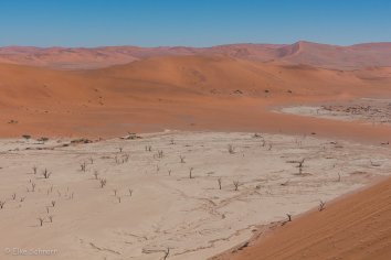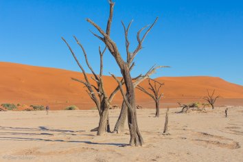 Im Dead Vlei herrscht ordentlich Andrang und es ist nicht ganz einfach, ein paar Fotos ohne fremde Menschen darauf zu bekommen. Auch sind einige Asiatengruppen da, die man wie so oft viel früher hört als man sie sieht. Schade, dass wir die schöne Szenerie nicht mit ein wenig mehr Ruhe genießen können.