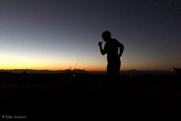 So langsam erwacht das Lager und alle versammeln sich, um den Sonnenaufgang zu fotografieren, während Puye für uns das Frühstück zubereitet.