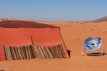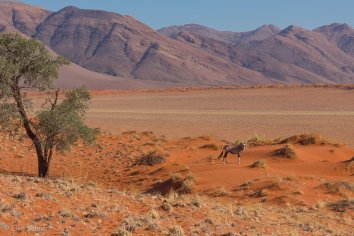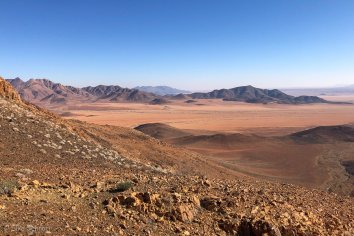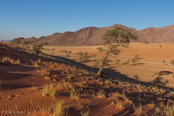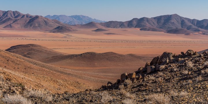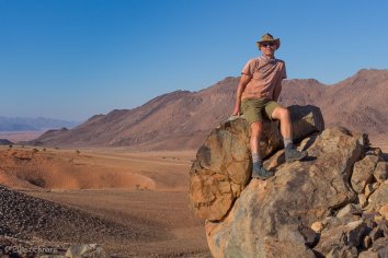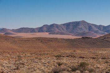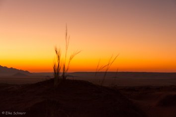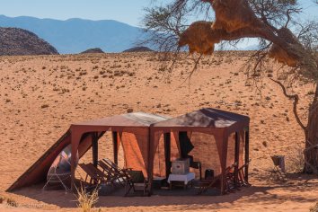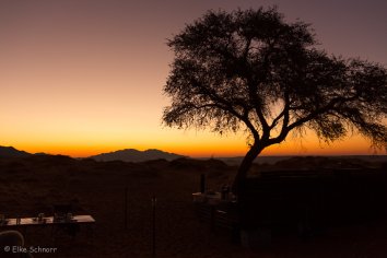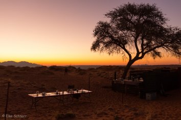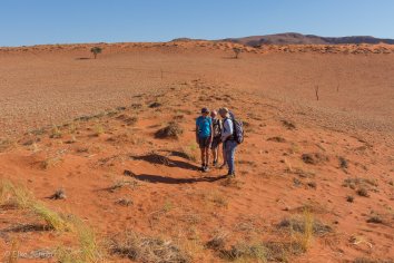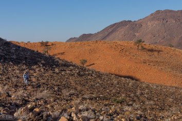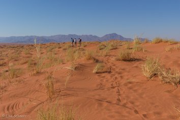 Unsere Koffer lassen wir stehen, die werden später von Stanley ins zweite Camp gebracht, während wir durch die Dünen wandern und die eindrucksvolle Berglandschaft bewundern.
