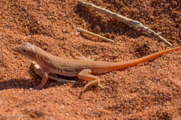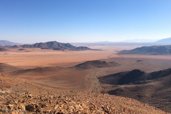 Über einen Sattel kommen wir auf die andere Seite des Horseshoe Mountain. Hier ändert sich die Landschaft ein wenig: es gibt kaum noch Dünen, stattdessen mehr Geröll und es ist rauer und steiniger.