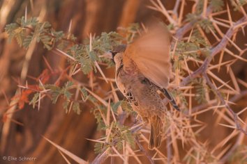 Auch ganz interessant: Die Kolonien dulden manchmal andere Vögel wie z.B. Zwergfalken in ihren Nestern. Diese tragen zwar absolut nichts zum Nestbau bei, können aber ggf. eine angreifende Schlange vertreiben und die Webervögel so schützen.