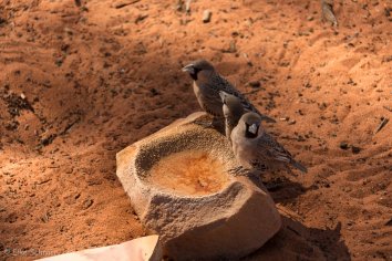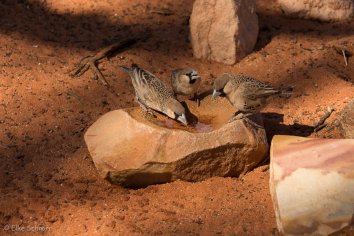 Gefüttert wird natürlich nicht, aber zumindest bekommen sie ein bisschen Wasser in einen hohlen Stein, der somit zur Vogeltränke umfunktioniert wird.