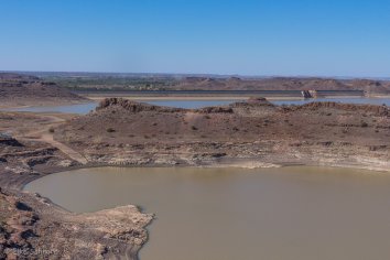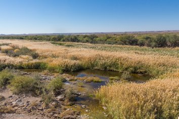 Kurz vor Mariental biegen wir von der B1 ab, um uns auf einem kleinen Umweg den Hardap-Damm anzuschauen. Reinette hatte uns heute Morgen beim Frühstück erzählt, dass aus diesem kürzlich sehr viel Wasser abgelassen wurde, um den neugebauten Neckartal-Damm zu füllen. Das sei aber eine ziemliche Schnapsidee gewesen, denn sämtliches Wasser versickerte wohl auf dem Weg zum neuen Damm — sowohl im ersten als auch im zweiten Versuch.