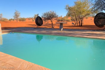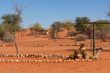 Beim Frühstück wundern wir uns zuerst ein wenig, dass die Angestellten mit warmen Bommelmützen herumlaufen, aber dann kommt die Erleuchtung: es ist ja schließlich gerade Winter in Namibia… Aber im Ernst: seit zwei Tagen ist es merklich kühler geworden. Die Tageshöchsttemperaturen erreichen nur noch knapp über 20 Grad — da kann man schon mal eine Mütze aufsetzen