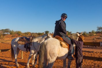 Danach schauen wir uns an, welche Aktivitäten von der Lodge so angeboten werden und entscheiden uns für heute Nachmittag für einen Pferde-Ausritt in die Dünen. Dieser soll auch für blutige Reit-Anfänger wie uns geeignet sein — also eine gute Gelegenheit, mal einen Pferderücken auszuprobieren.